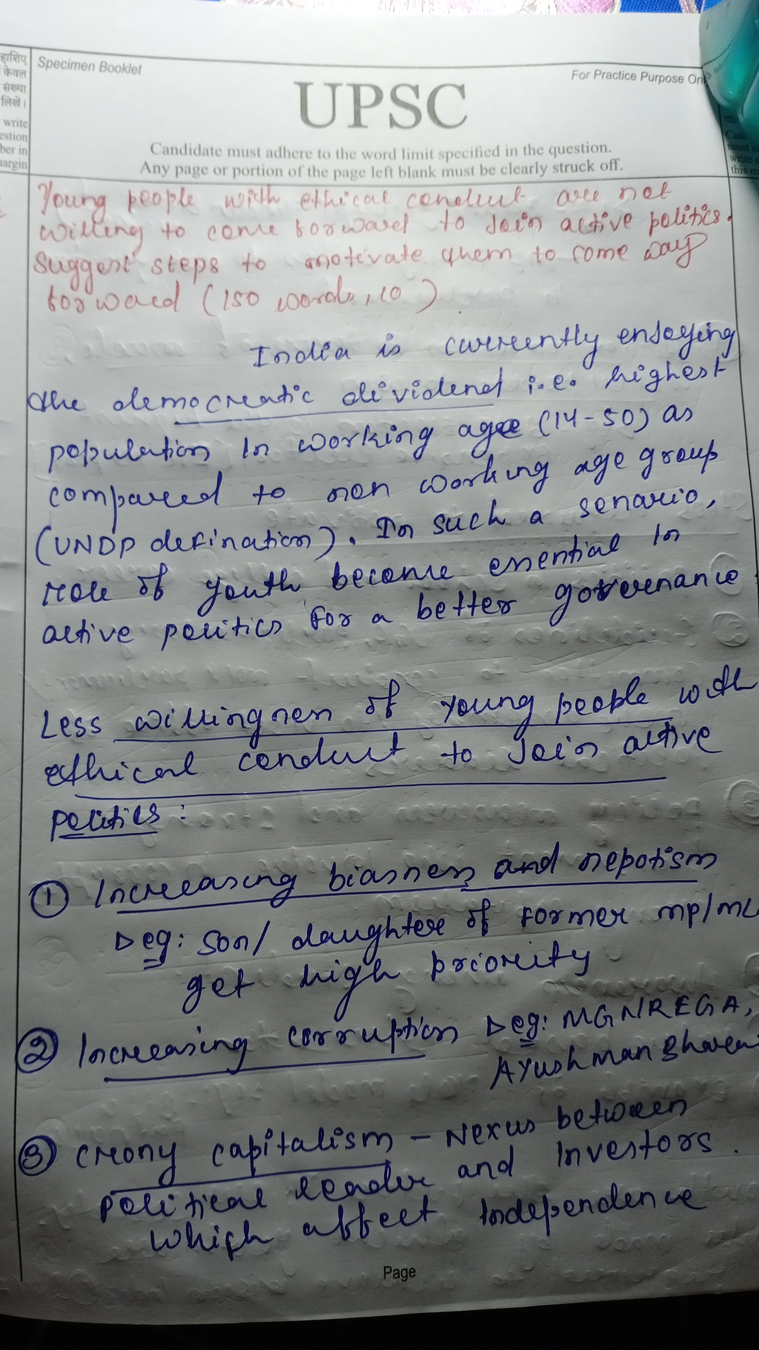 Introduction: Highlight the reluctance of young people to join politics due to ethical concerns.Body: